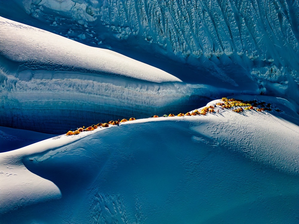 Oproti loňsku jsem pokračoval ještě v minimalizaci. Větší foťák se světelnými objektivy zůstal v prvním výškovém táboře, já šel jen s malým připevněným na popruhu batohu. K tomu jsem měl menší dron. Zkrátka řešil jsem každý gram a vyplatilo se! Od jisté doby vím, že své krásné profesionální foťáky mohu mít všude kromě takového extrému, kde jejich používání není absolutně samozřejmé. Pokud se pohybuji fyzicky na hraně, foťák musí být v ruce sotva postřehnutelný, jinak mi ty nejlepší snímky utečou.